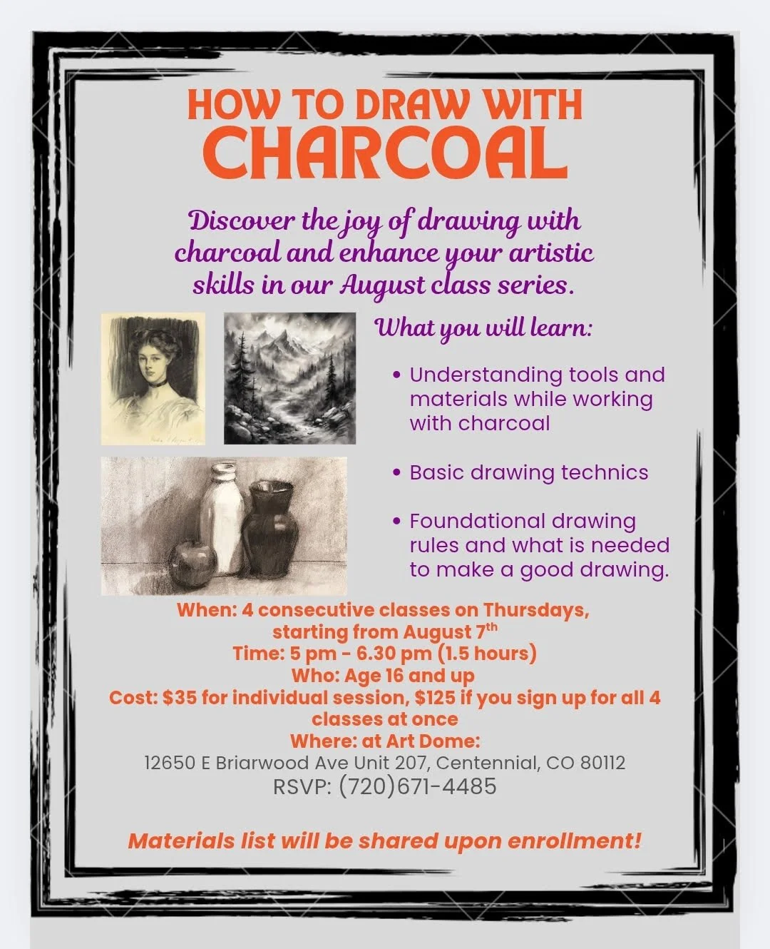 Contact us at (720) 671-4485 to register for art master class.